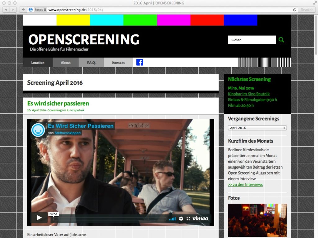 Webseite einer offenen Bühne für Filmemacher in Berlin